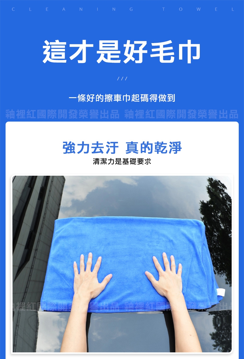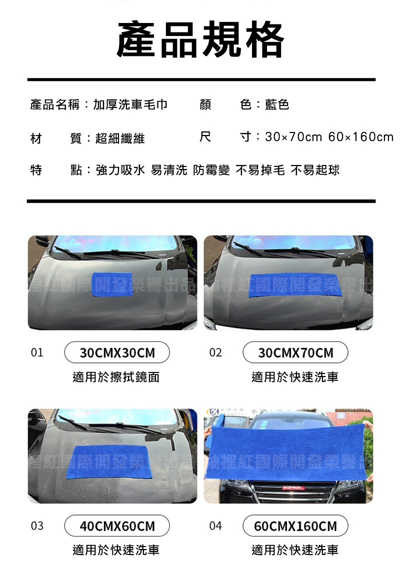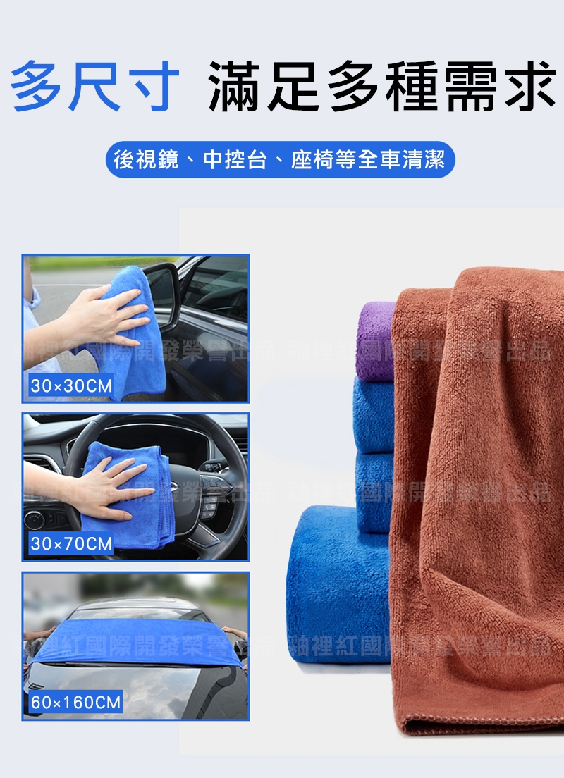 產品名稱:頂級加厚超細纖維洗車巾/擦車布/藍色毛巾-加大30x70cm