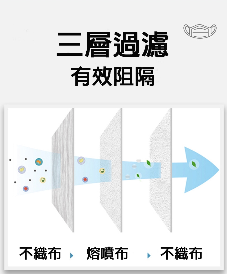 此商品為一次性口罩,請勿重複配戴使用。