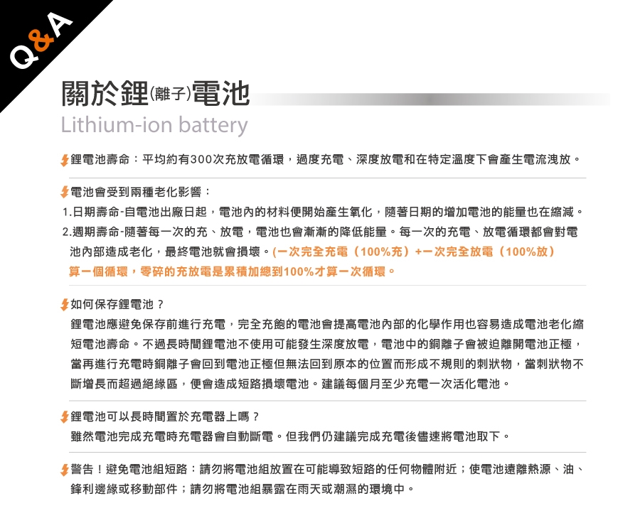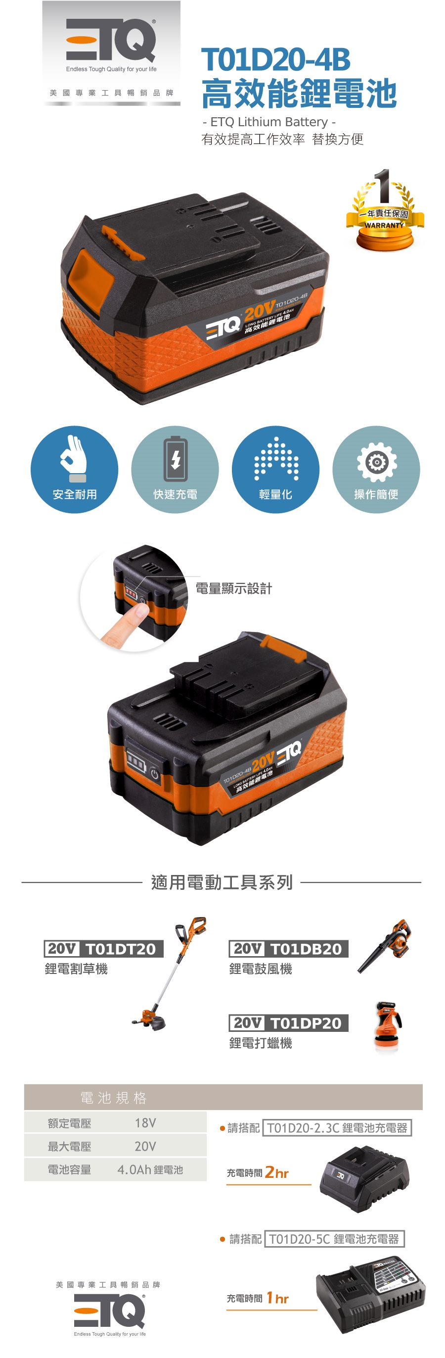 ETQ提供12個月的產品本體保固期(請參考該產品包裝標示);部分產品提供6個月保固,例如鋰電池及充電器;正常消耗配件品及消耗性產品僅適用於新品瑕疵,不適用免費維修保固範圍內。