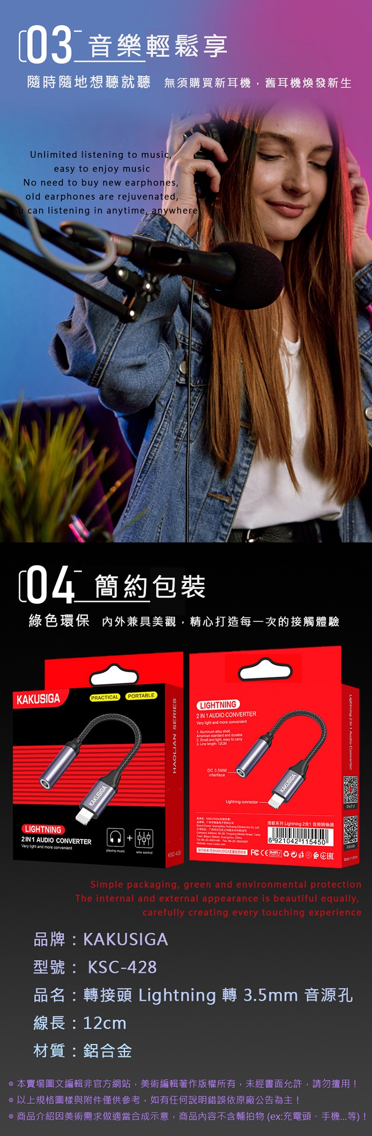 KAKUSIGA 轉接頭 Lightning 轉 3.5mm 音源孔 KSC-428(公司貨)