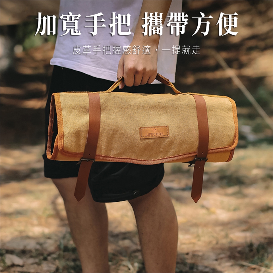 【LIFECODE】露營多用途工具地釘營繩收納包/工具袋-沙色/黑色 ◆ 多袋設計,按分類種類放置 ◆ 可收納不同長度的地釘與營錘 ◆ 側邊拉鍊網袋設計可放置小物品防止掉落 ◆ 折疊收納,方便節省空間 ◆ 皮革材質加寬提手,好握舒適 商品規格: ◆ 材質:帆布、皮革、五金 ◆ 收合尺寸: 43 x 20 cm ◆ 重量:395 g(單一個) ◆ 保固:新品保固14天,商品若有瑕疵,請於鑑賞期7天內反映,一經使用恕無法辦理退貨。 ◆ 若需退換商品請保持商品.配件全新完整及原包裝的完整性。 |