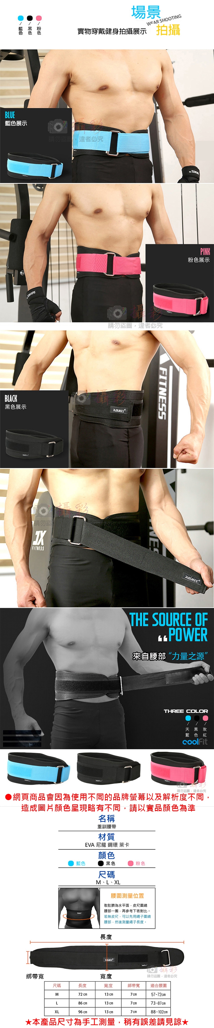 注 意:本商品為運動用腰帶,非醫療用品,請勿用於復健等用途。