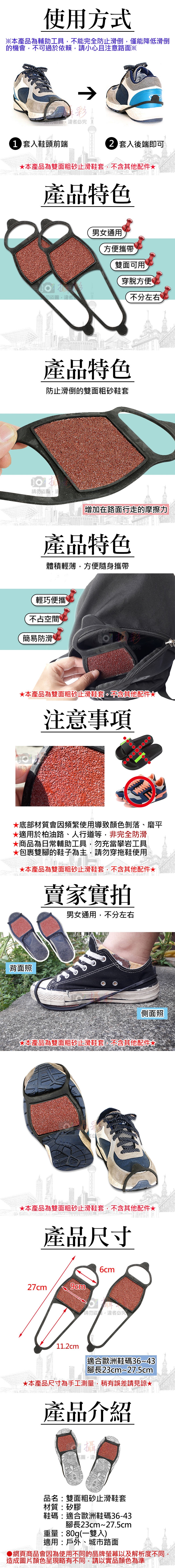 3.此為日常輔助防滑工具,勿充當攀岩等工具做使用
