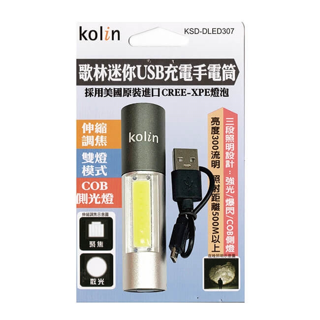 手電筒充飽電,強光可連續使用約80-100分鐘