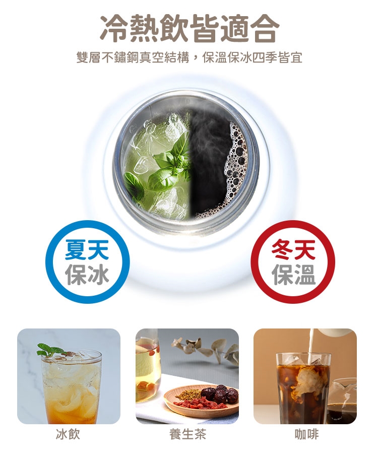 ※使用前可用熱/冰水,預熱或預冷5~10分鐘,保溫/保冰效果更佳。