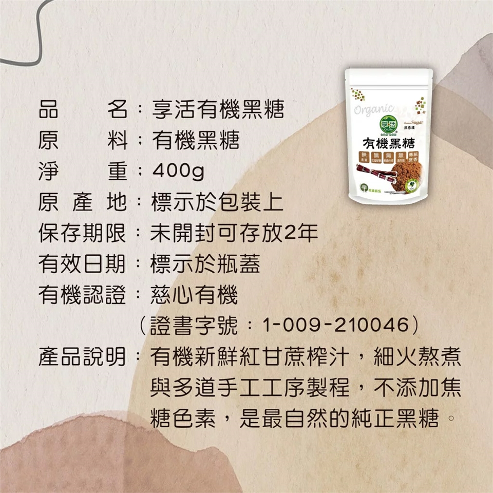 品名:享活有機黑糖