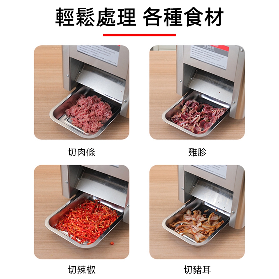 1、不能把以下食物放進本機器裏面切:硬的瓜果、帶骨的肉、凍肉否則容易損壞刀片、卡住機器.