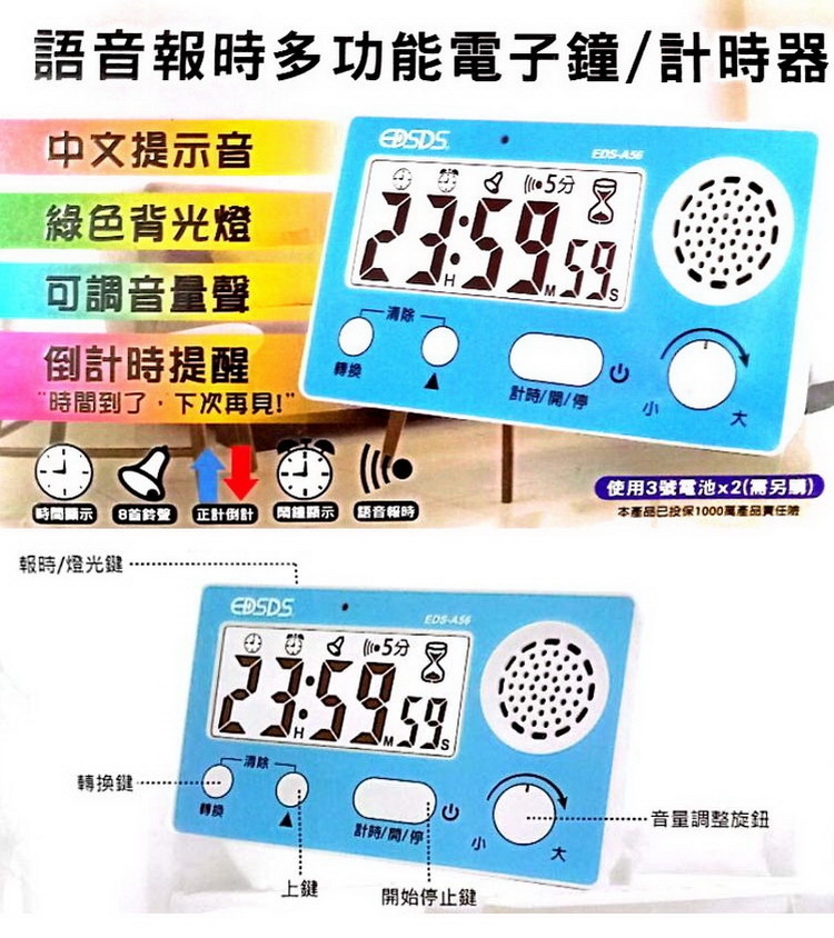 【愛迪生】LED語音報時多功能電子鬧鐘 (EDS-A56)