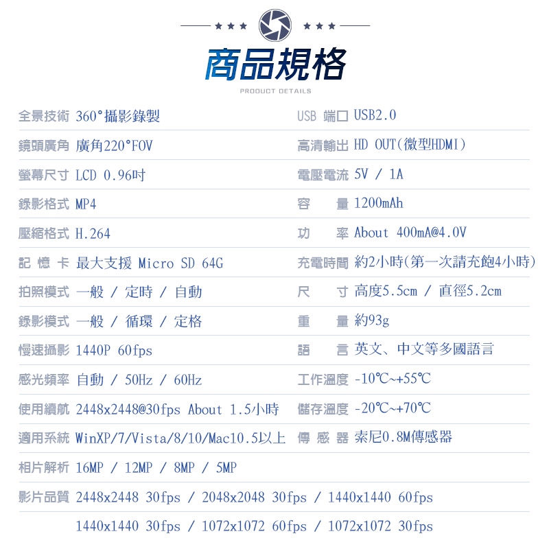 🎯使用續航| 2448x2448@30fps About 1.5小時