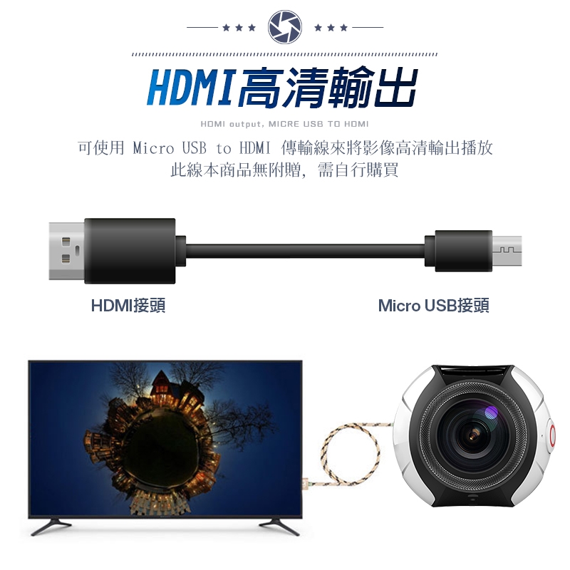 可使用Micro USB to HDMI傳輸線,讓影像高清輸出播放