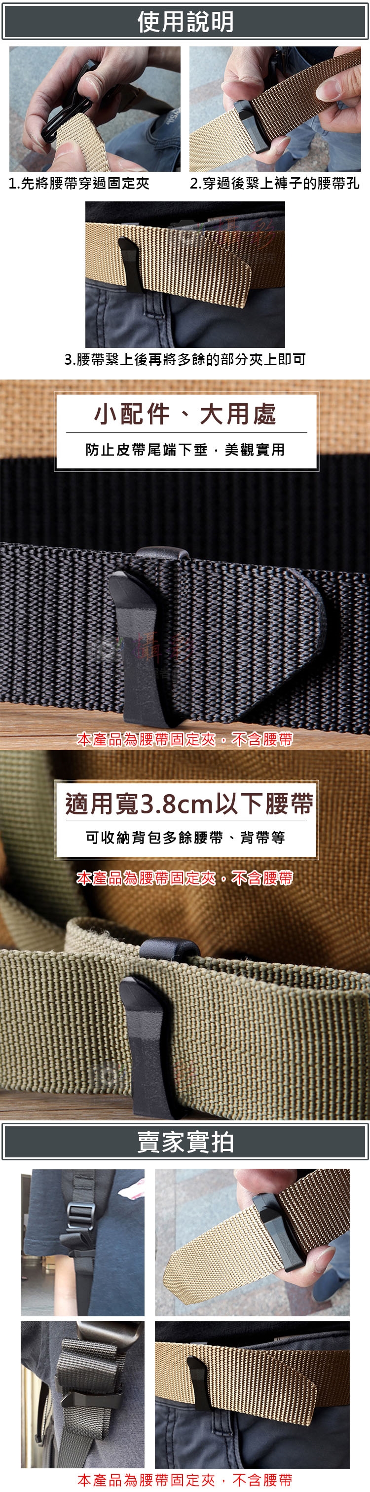 戰術腰帶固定夾可以搭配普通皮帶,使用於固定和收納皮帶,便攜耐用,方便您無需切割或縫製即可安裝和拆卸,非常適合露營、遠足、旅行背包、旅行袋等。