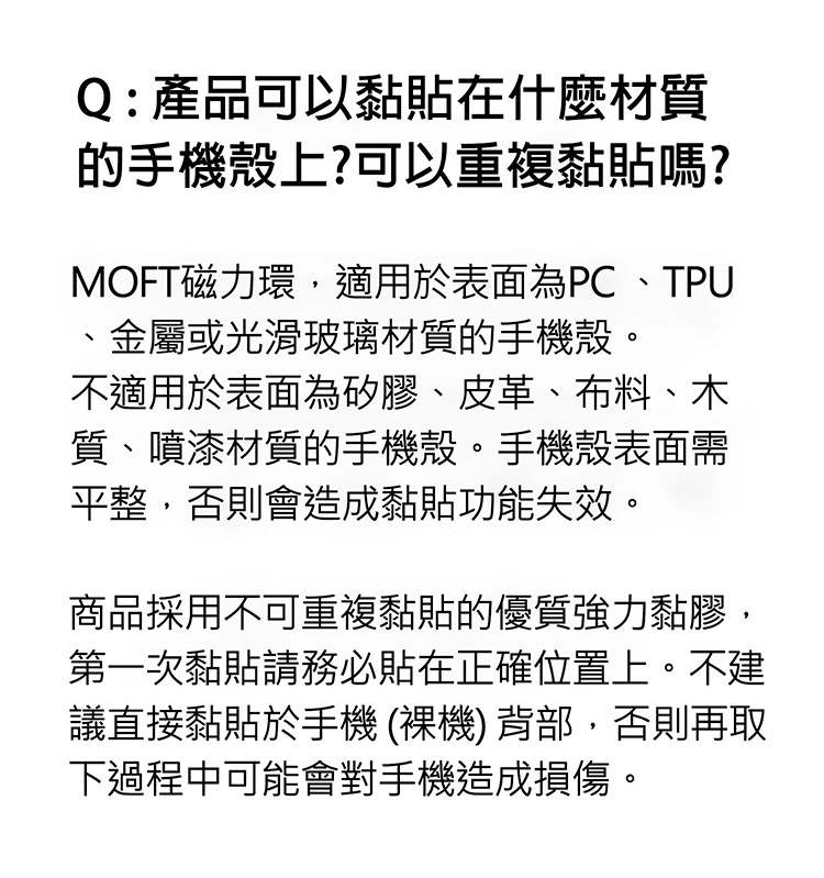 *貼紙可黏貼在保護殼上,但不得為矽膠/橡膠/皮革/磨砂玻璃/布料/木質/霧面、不平整或防水表面、 熱塑性彈性體(TPE)。