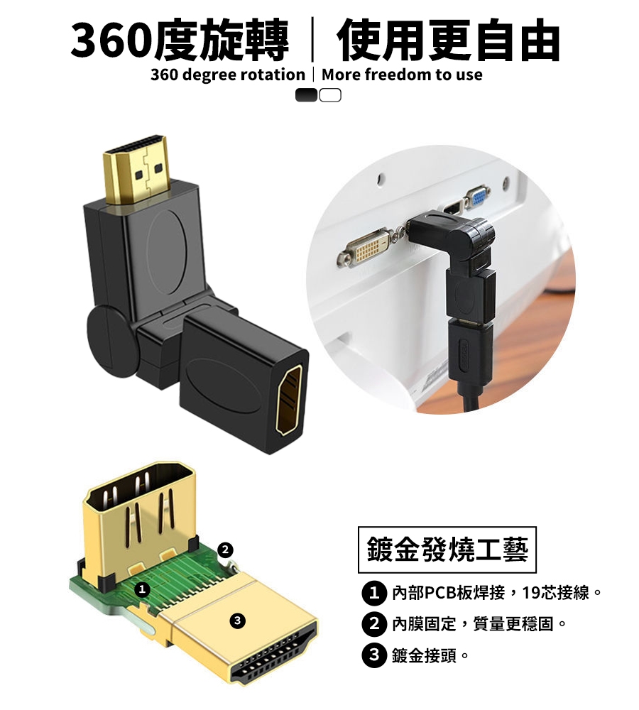 ◆即插即用◆高清傳輸◆鍍金接口◆靈活轉向
