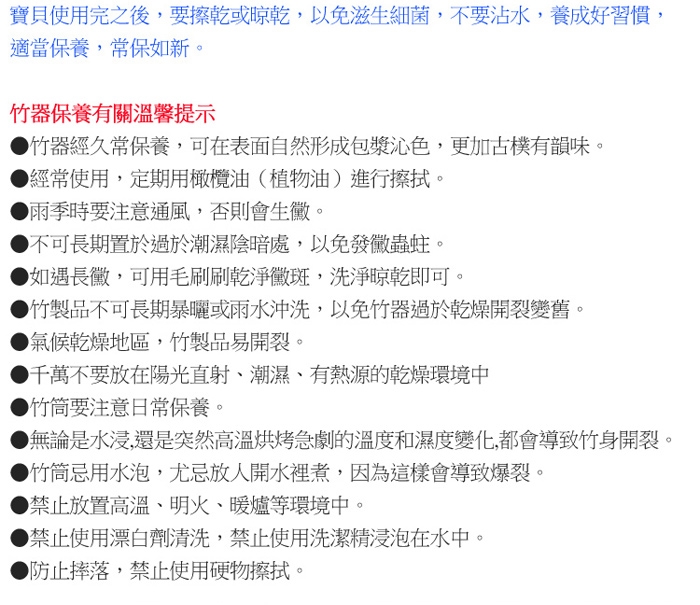 竹器保養有關溫馨提示