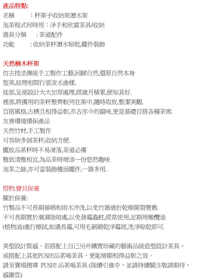●竹製品不可長期暴曬或雨水沖洗,以免竹器過於乾燥開裂變舊。