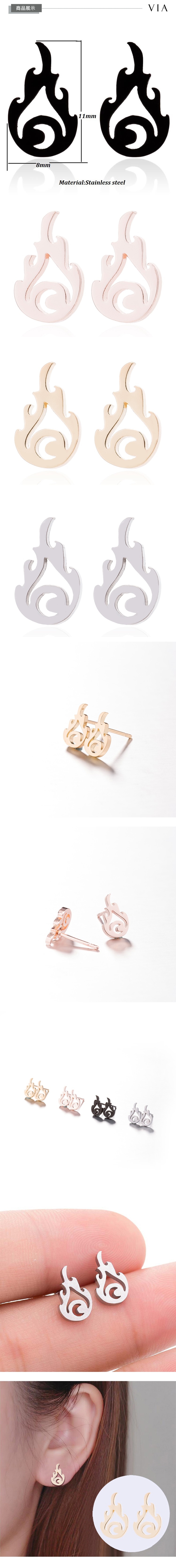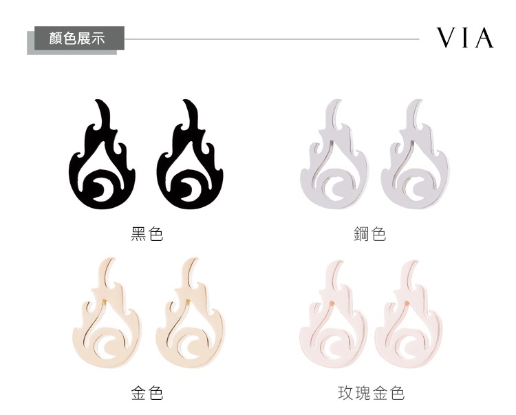 【VIA】個性系列 火焰縷空造型白鋼耳釘 造型耳釘 鋼色
