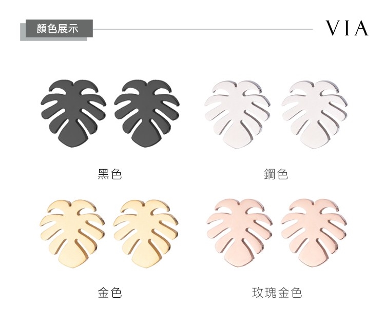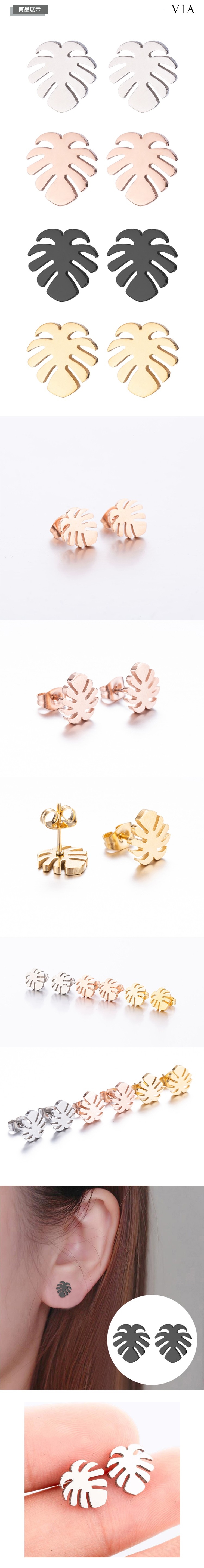 【VIA】植物系列 棕櫚樹葉造型白鋼耳釘 造型耳釘 玫瑰金色