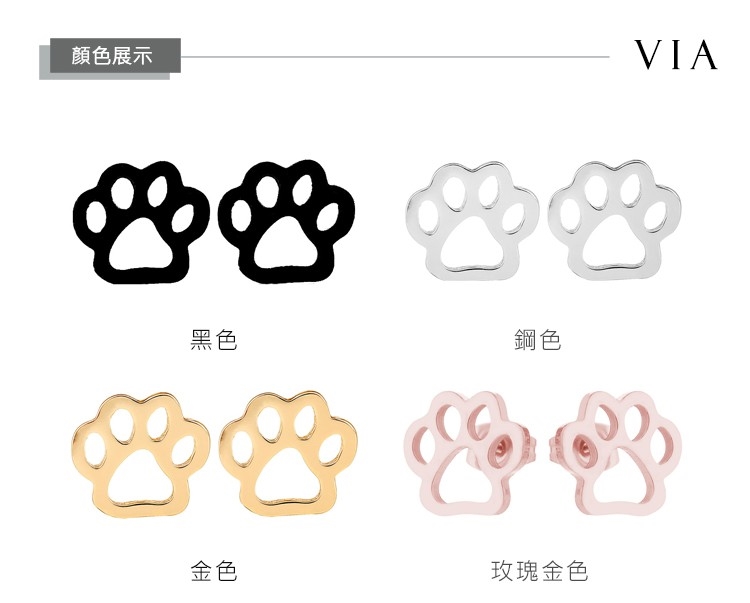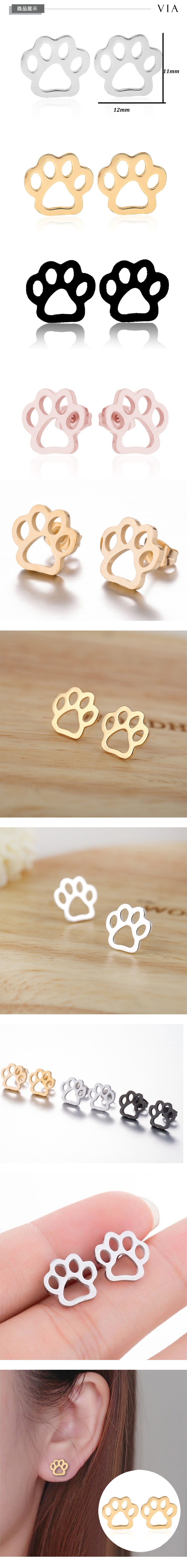 【VIA】動物系列 可愛掌印縷空線條造型白鋼耳釘 造型耳釘 玫瑰金色