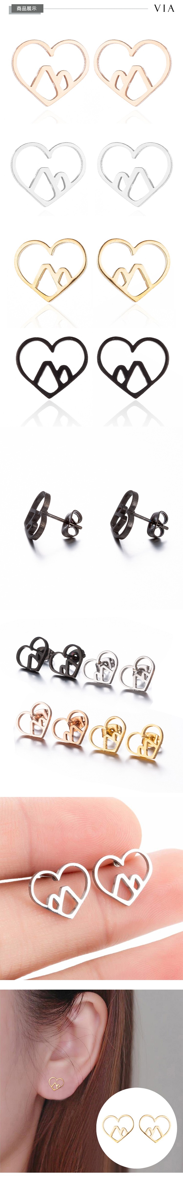 【VIA】符號系列 可愛縷空小山愛心造型白鋼耳釘 造型耳釘 金色