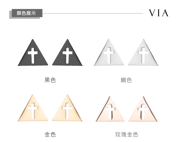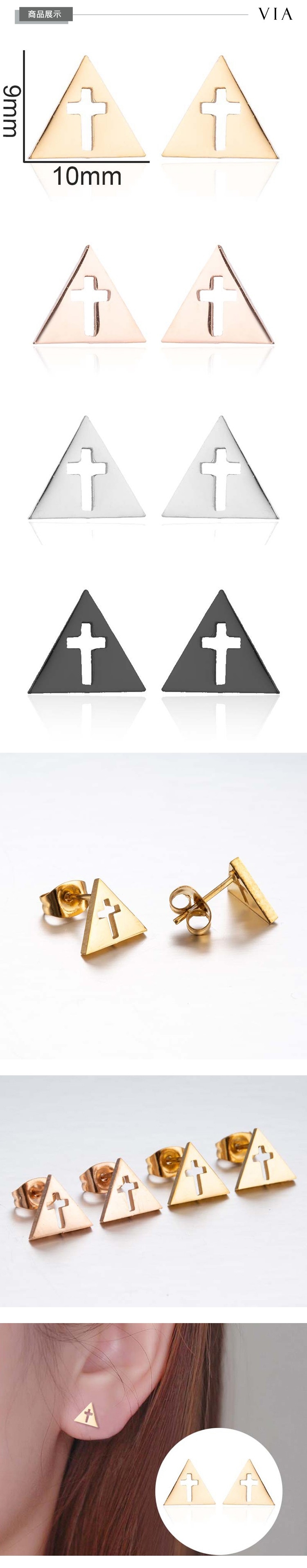 【VIA】符號系列 縷空十字架三角造型白鋼耳釘 造型耳釘 鋼色