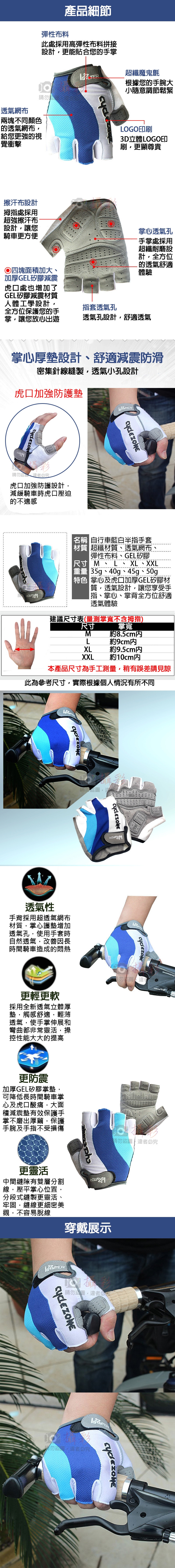 名稱:自行車藍白半指手套