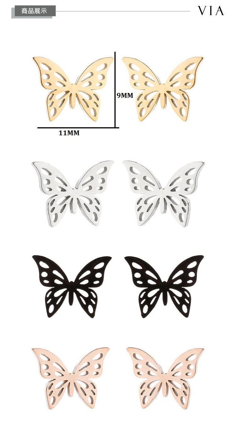 【VIA】昆蟲系列 經典縷空蝴蝶造型白鋼耳釘 造型耳釘 鋼色