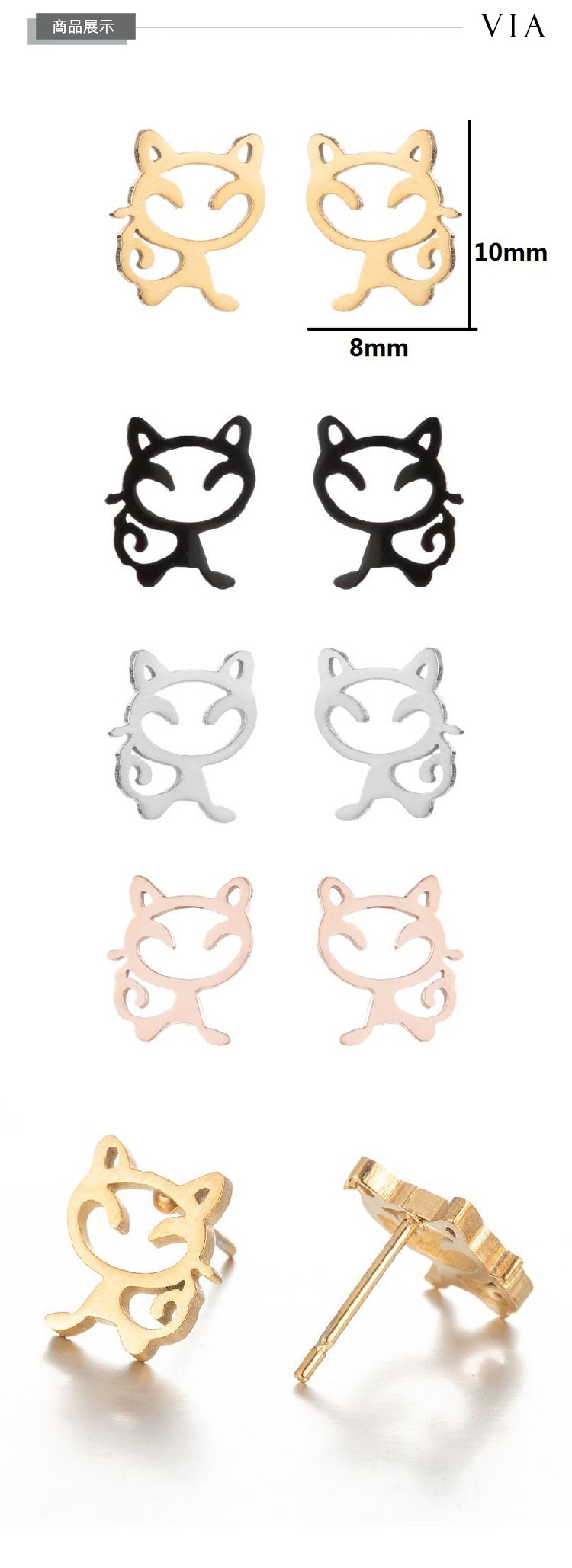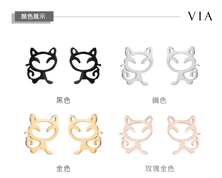 【VIA】動物系列 俏皮貓咪造型白鋼耳釘 造型耳釘 鋼色