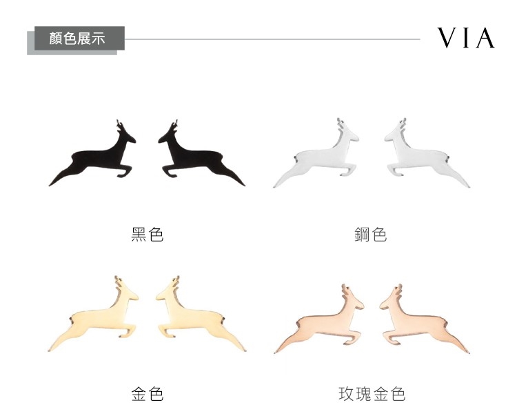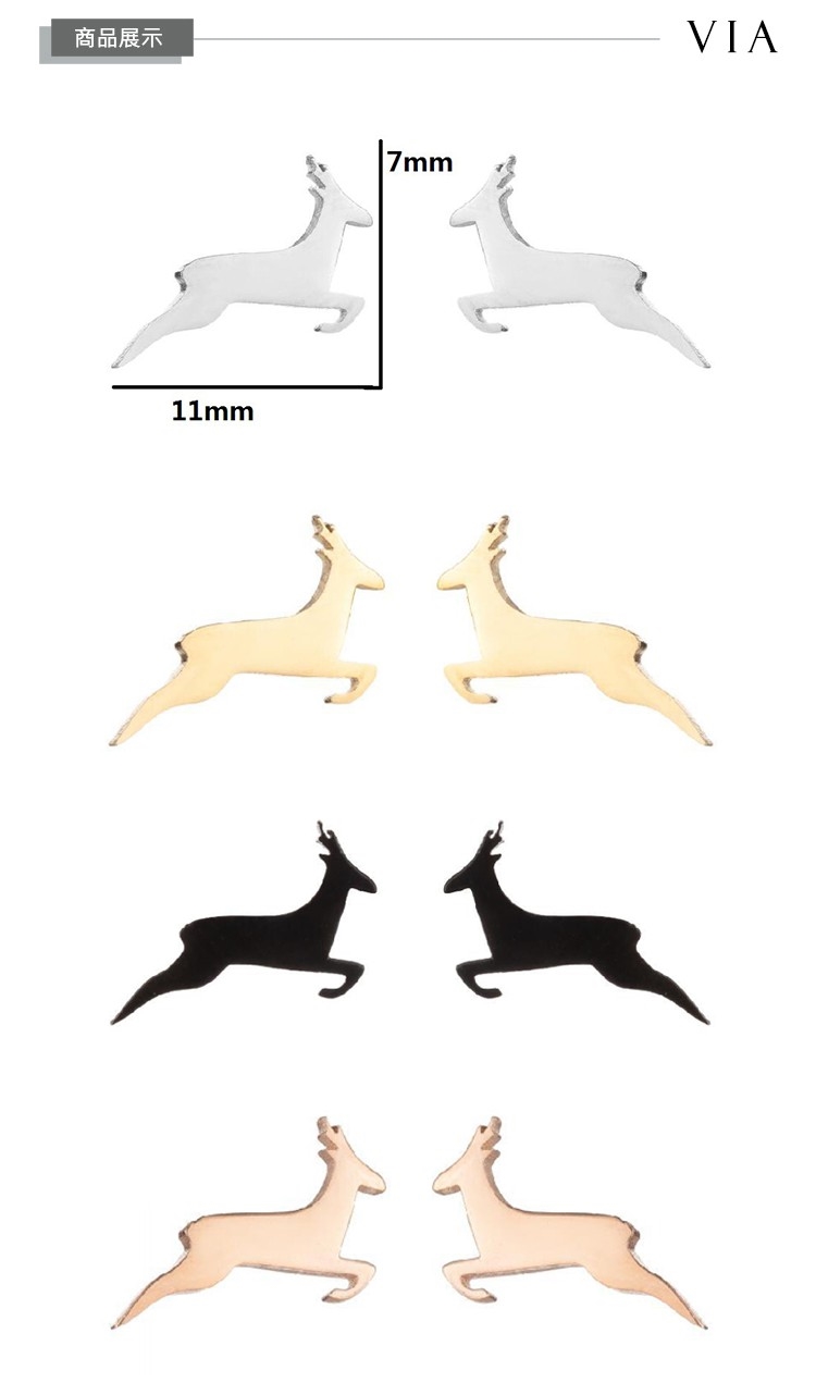 【VIA】動物系列 飛奔的小鹿造型白鋼耳釘 造型耳釘 鋼色