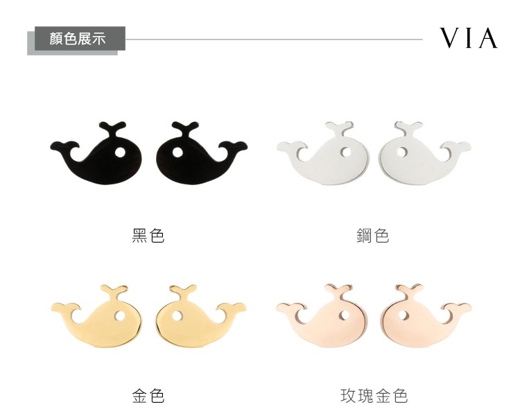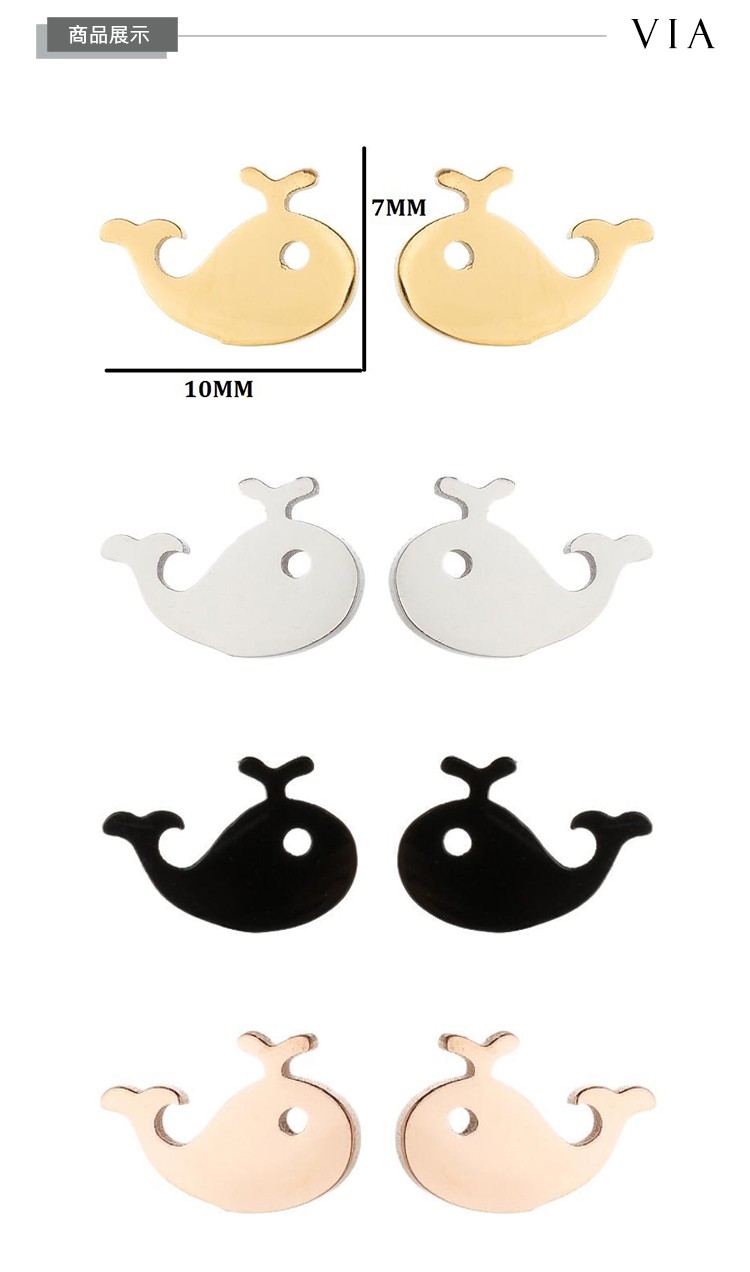 【VIA】海洋系列 可愛噴水小鯨魚造型白鋼耳釘 造型耳釘 鋼色