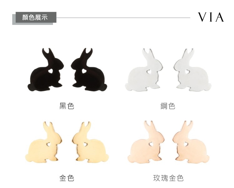 【VIA】動物系列 溫和小兔造型白鋼耳釘 造型耳釘 鋼色