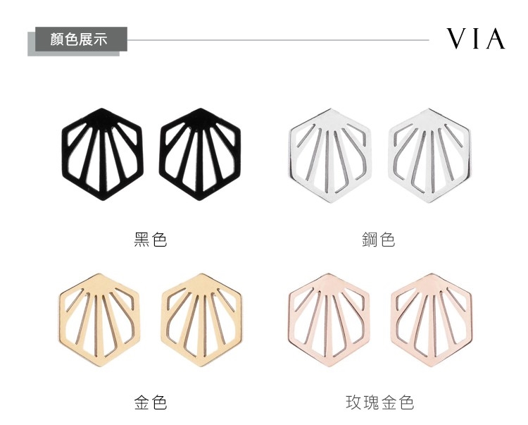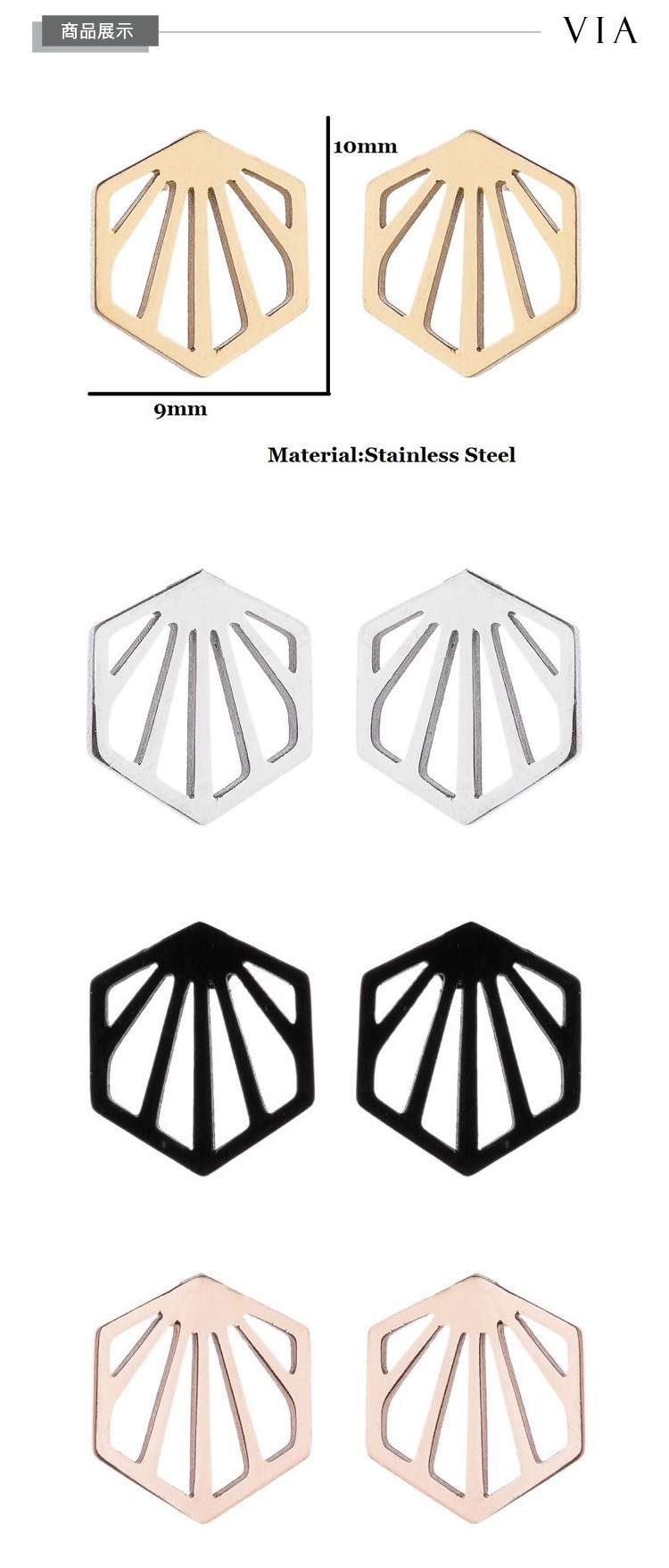 【VIA】海洋系列 幾何六角貝殼造型白鋼耳釘 造型耳釘 鋼色