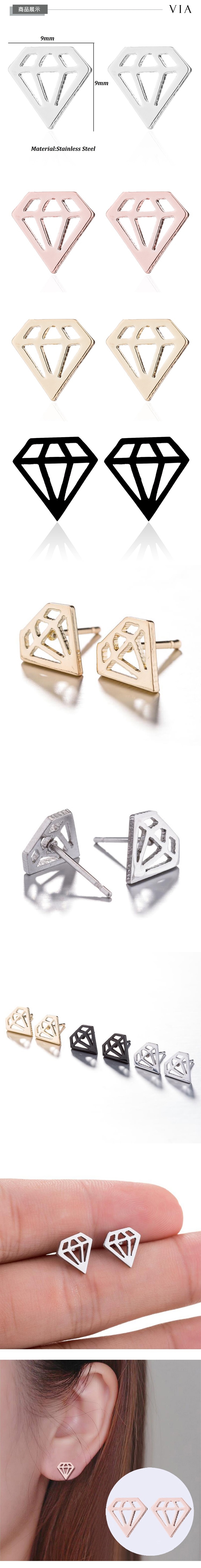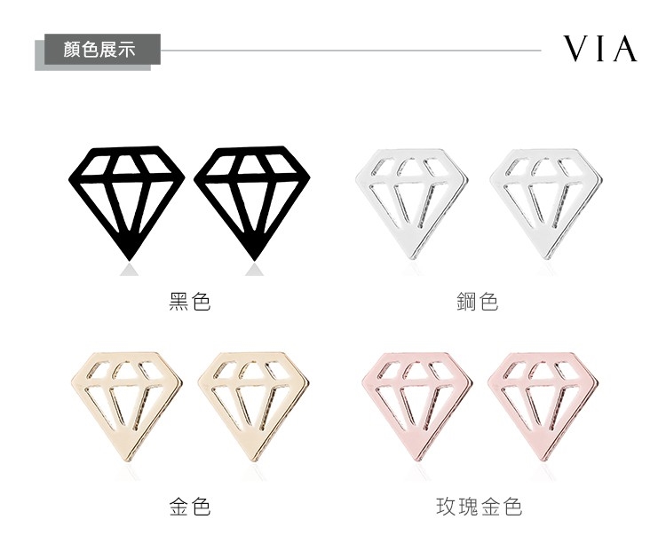 【VIA】時尚系列 縷空菱形鑽石線條造型白鋼耳釘 造型耳釘 金色