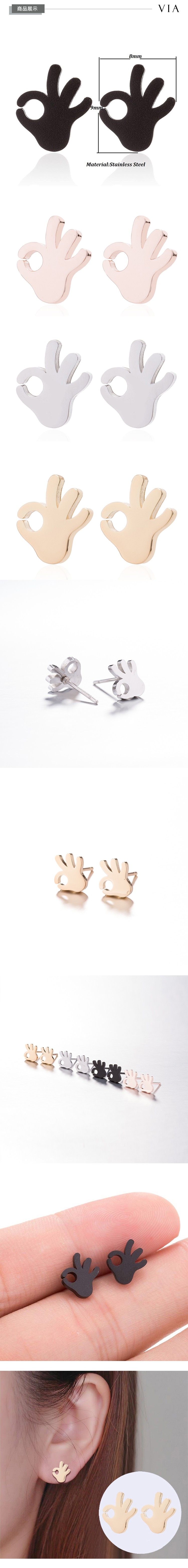 【VIA】符號系列 OK手勢造型白鋼耳釘 造型耳釘 玫瑰金色