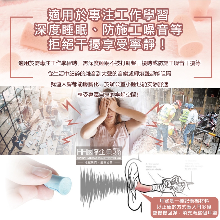 用途:於讀書、睡眠、臨近施工環境、搭乘大眾運輸等需減低外在噪音干擾時使用。