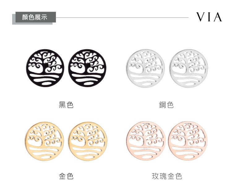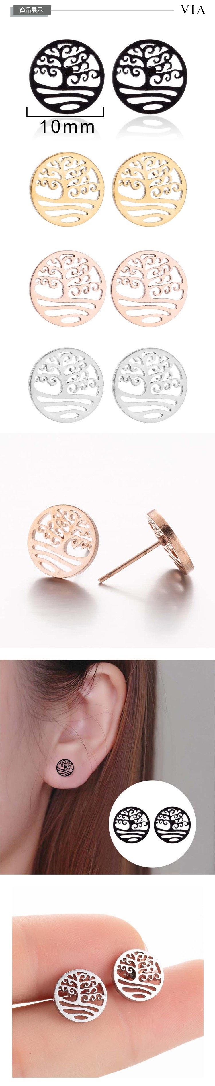 【VIA】植物系列 縷空圈圈生命樹造型白鋼耳釘 造型耳釘 鋼色