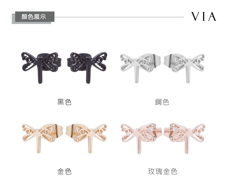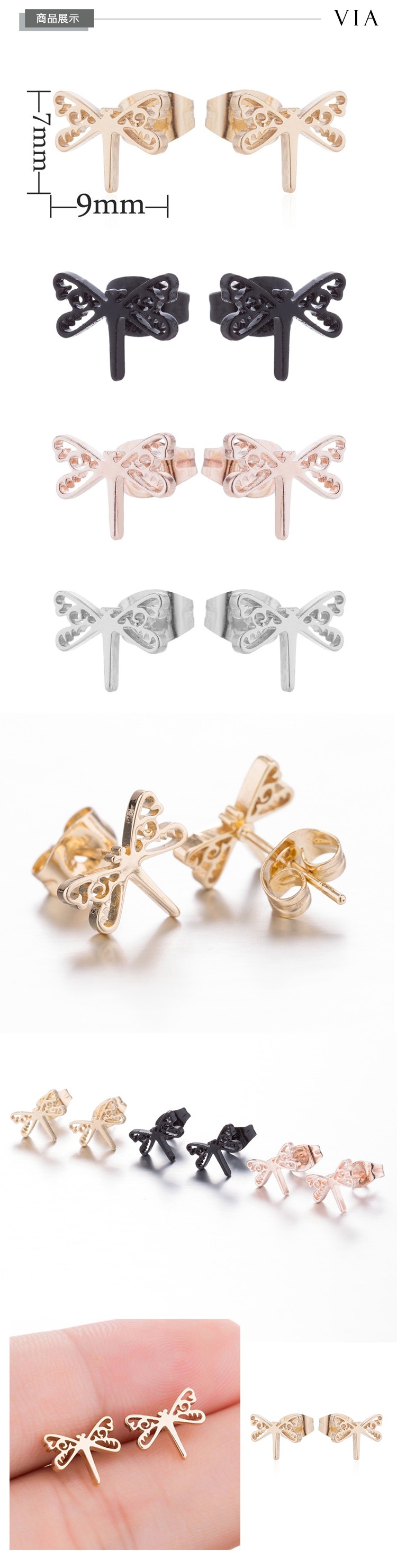 【VIA】昆蟲系列 縷空精緻蜻蜓造型白鋼耳釘 造型耳釘 鋼色