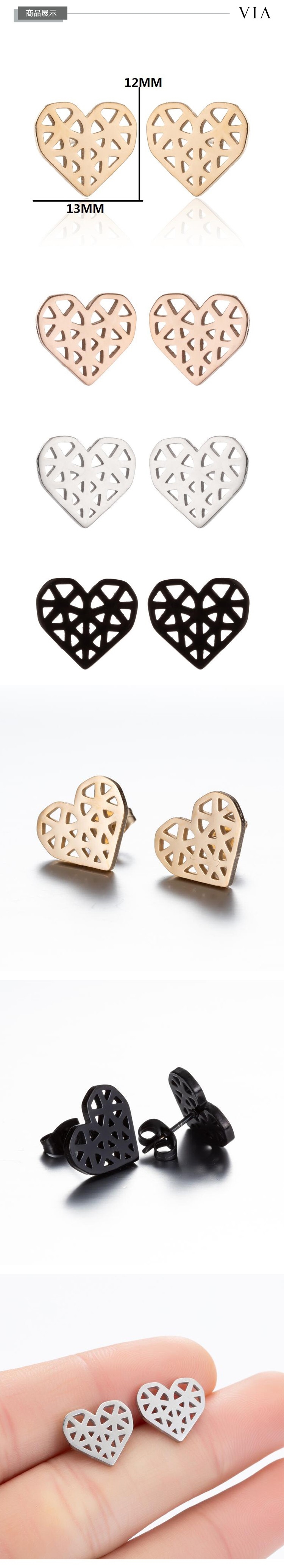 【VIA】時尚系列 縷空線條個性愛心造型白鋼耳釘 造型耳釘 鋼色