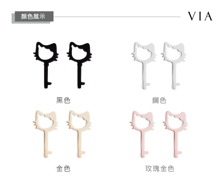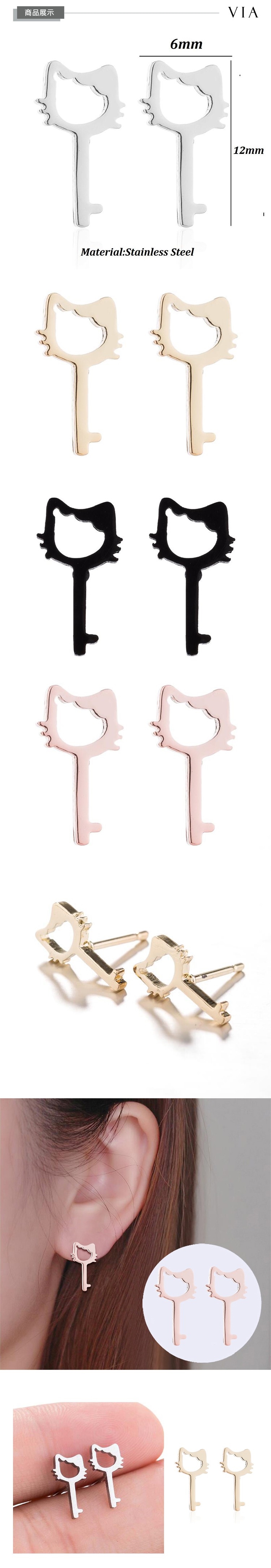 【VIA】時尚系列 可愛貓咪鑰匙造型白鋼耳釘 造型耳釘 鋼色