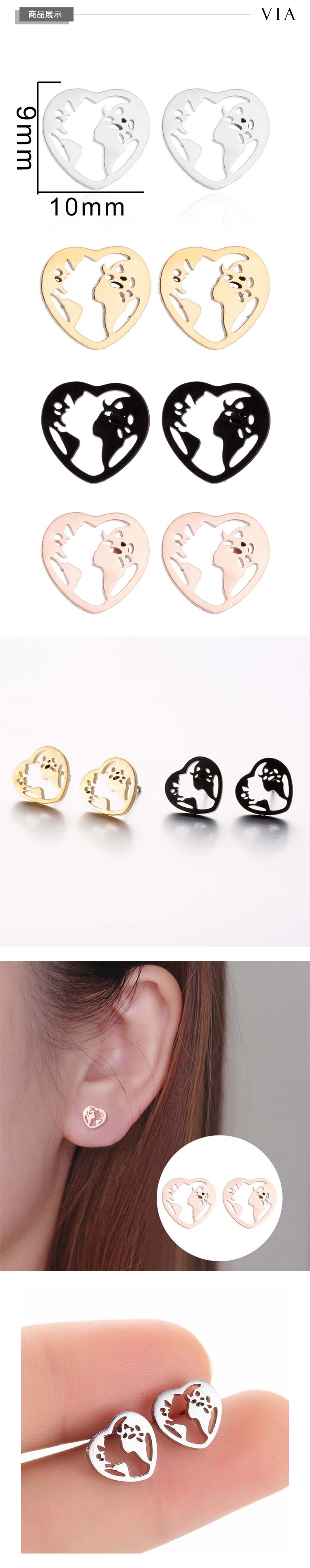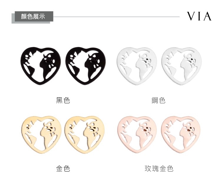 【VIA】時尚系列 愛心地圖造型白鋼耳釘 造型耳釘 鋼色