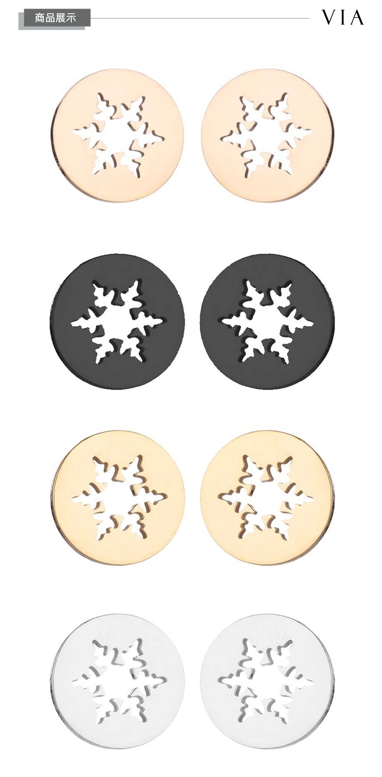 【VIA】節日系列 縷空雪花造型白鋼耳釘 造型耳釘 鋼色