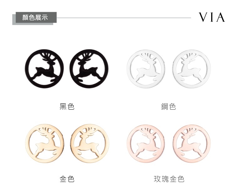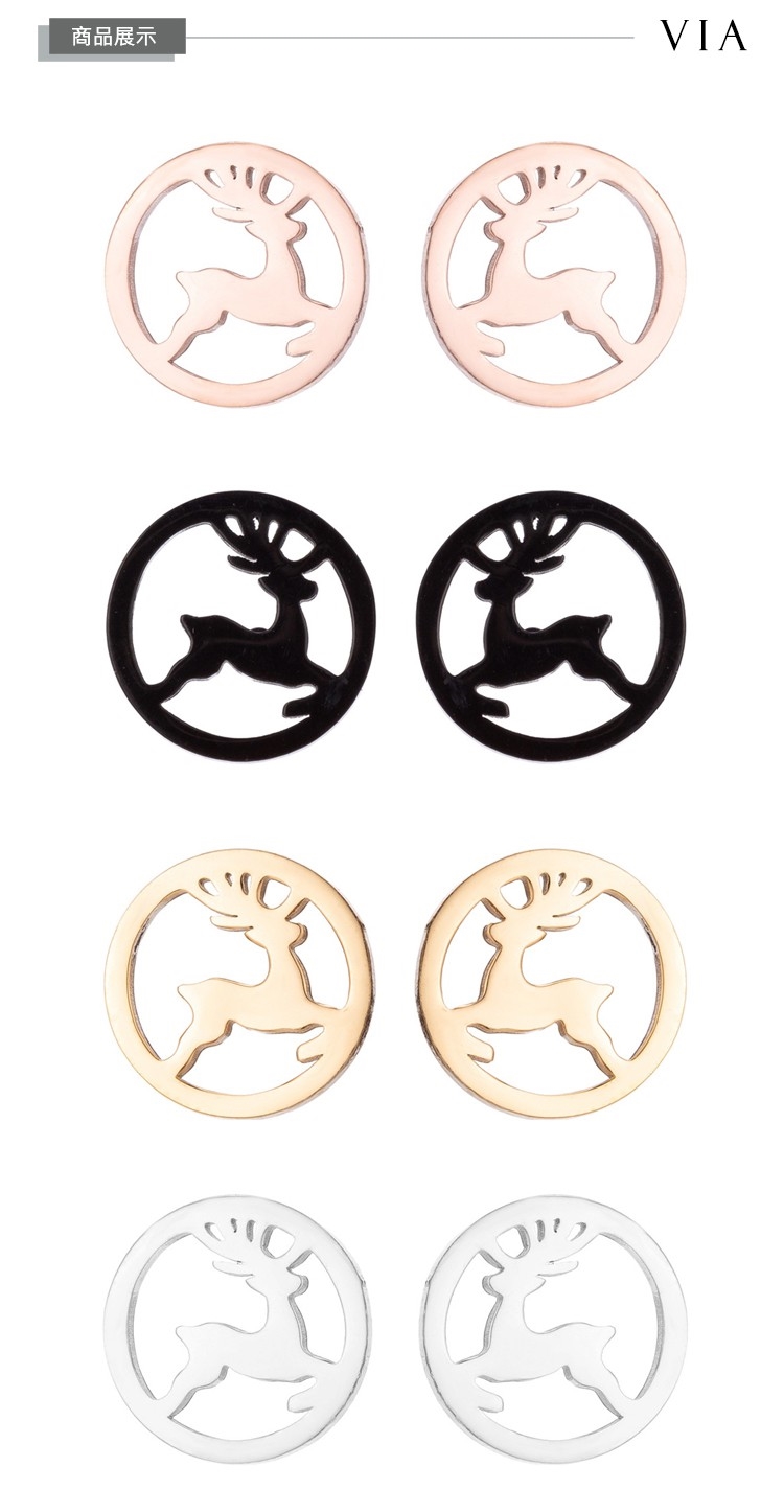 【VIA】節日系列 縷空圈圈飛躍麋鹿造型白鋼耳釘 造型耳釘 鋼色