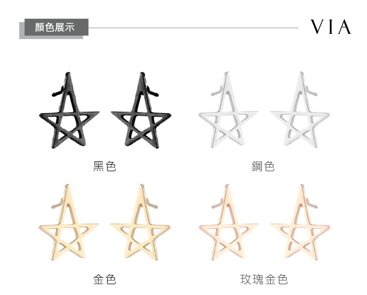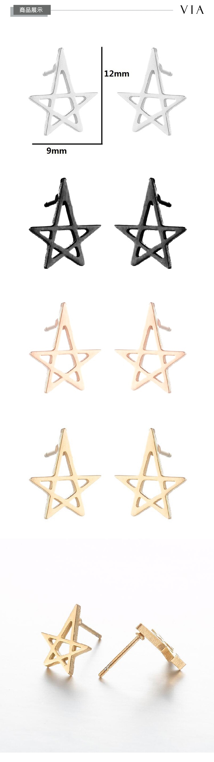 【VIA】星空系列 不對稱星星線條造型白鋼耳釘 造型耳釘 鋼色