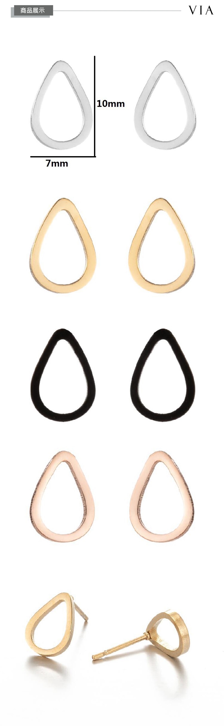 【VIA】符號系列 縷空線條水滴造型白鋼耳釘 造型耳釘 鋼色