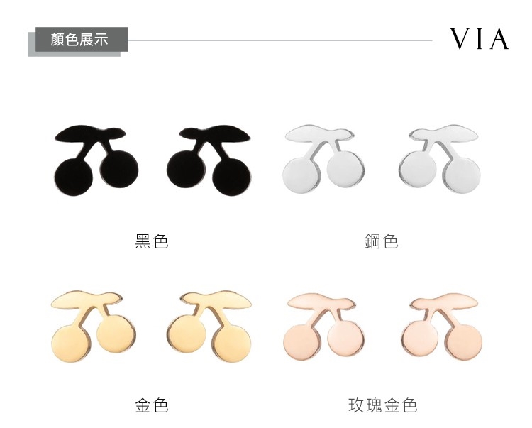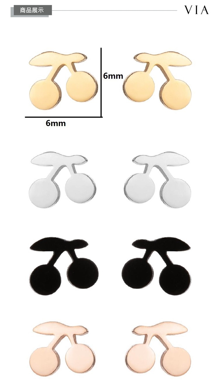 【VIA】植物系列 可愛小櫻桃造型白鋼耳釘 造型耳釘 鋼色