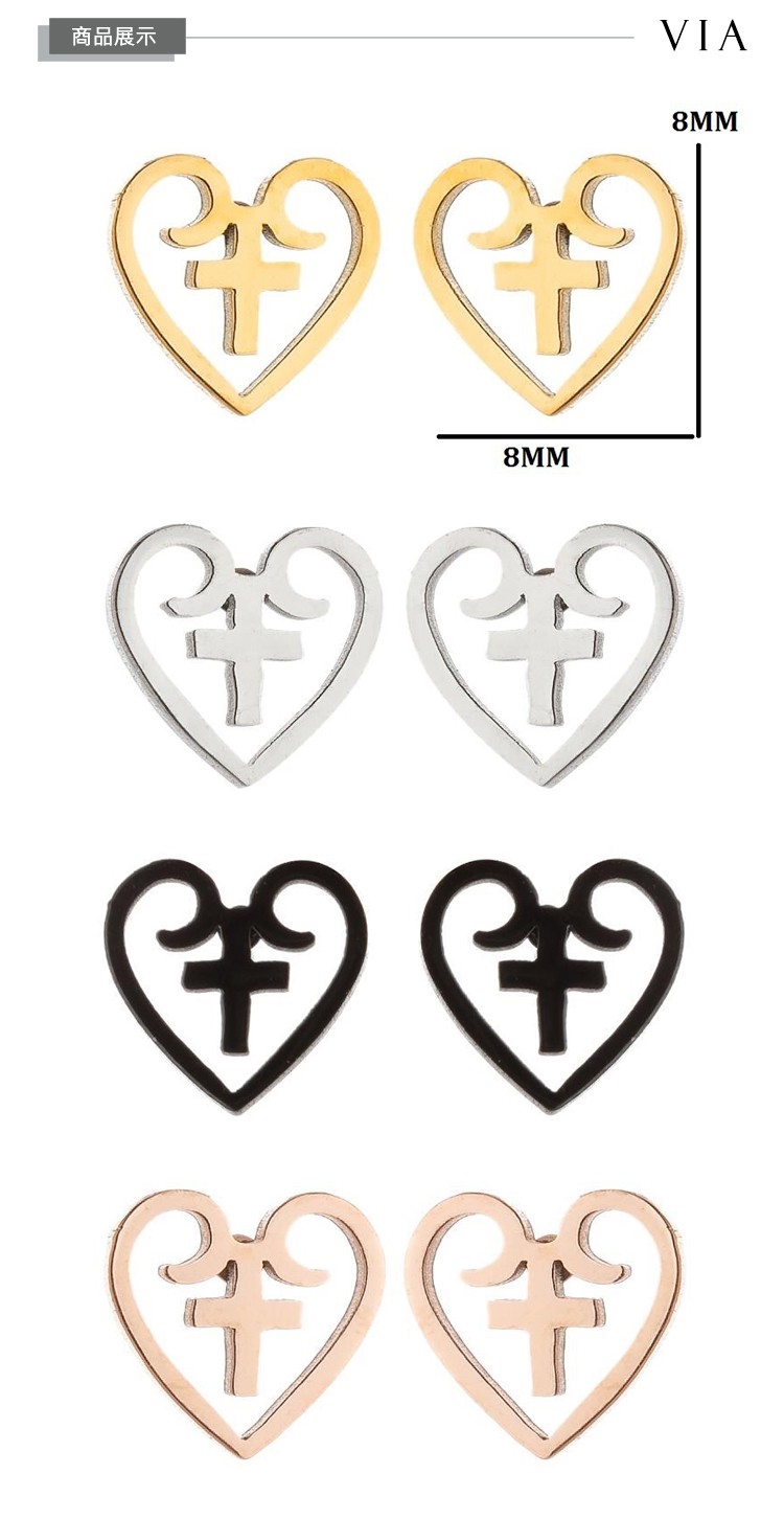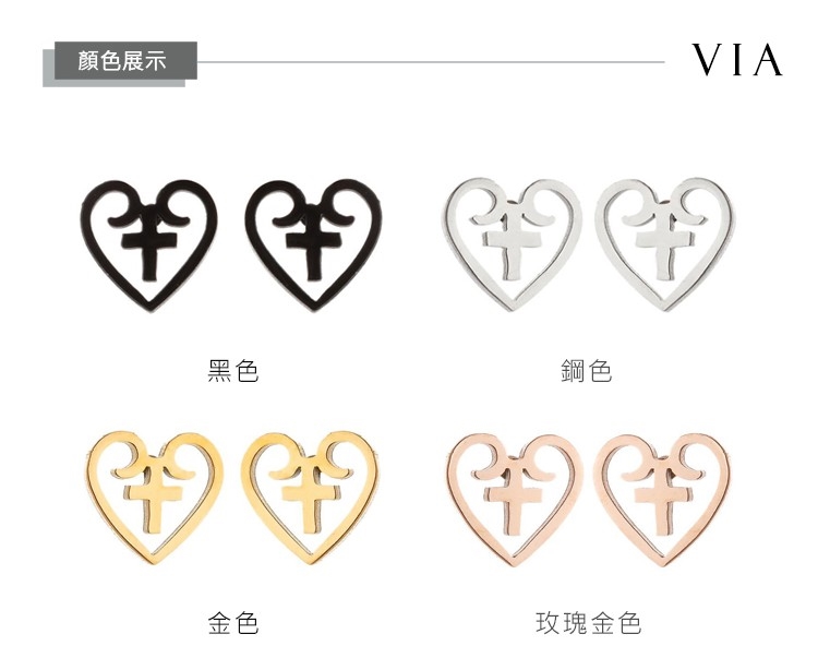 【VIA】符號系列 縷空十字架愛心造型白鋼耳釘 造型耳釘 鋼色