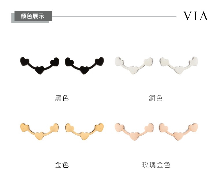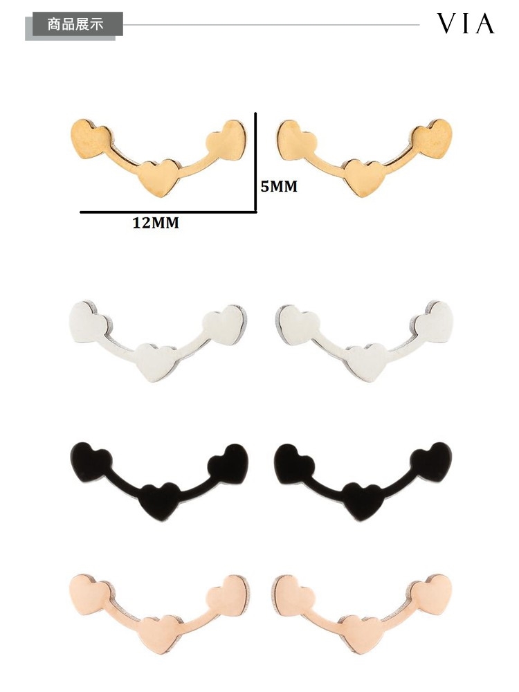 【VIA】符號系列 迷你愛心串連造型白鋼耳釘 造型耳釘 鋼色
