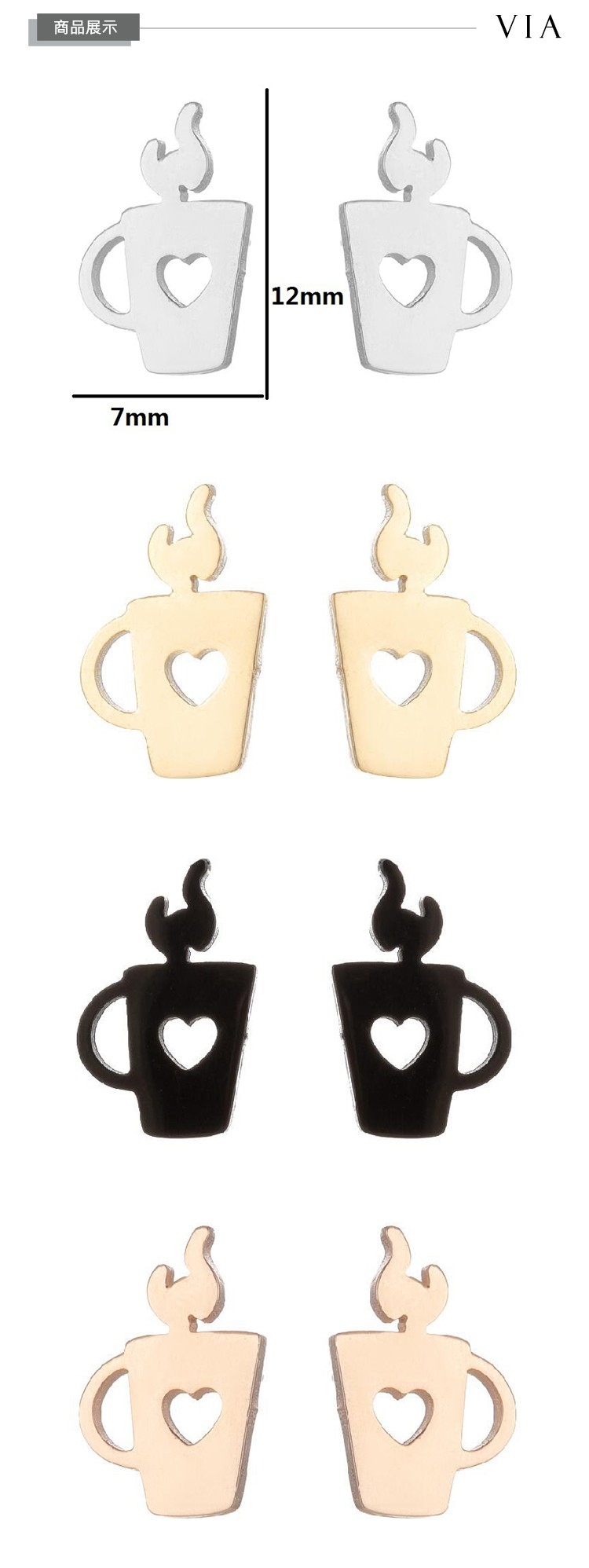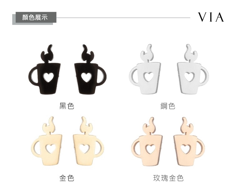 【VIA】時尚系列 冒煙熱可可愛心縷空馬克杯造型白鋼耳釘 造型耳釘 鋼色
