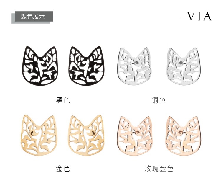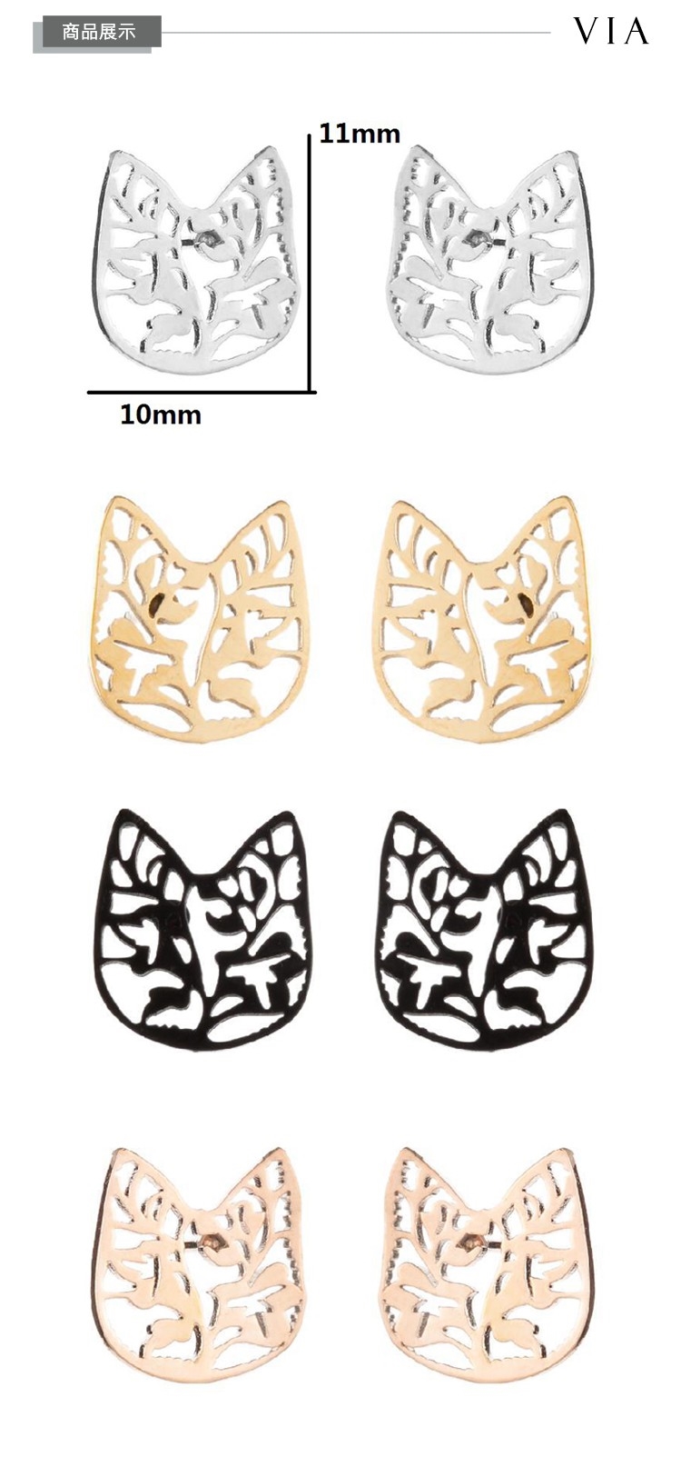 【VIA】動物系列 縷空線條貓咪形狀白鋼耳釘 造型耳釘 鋼色