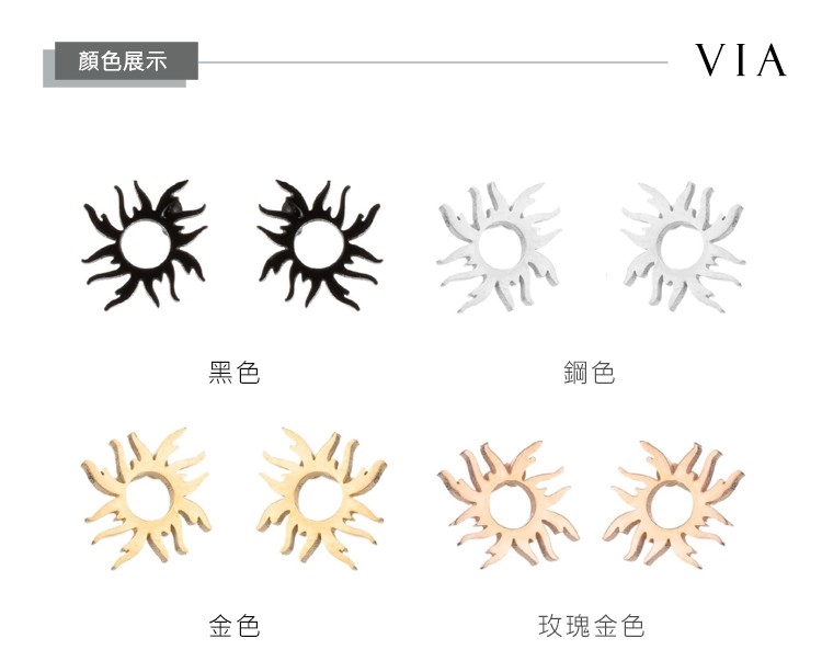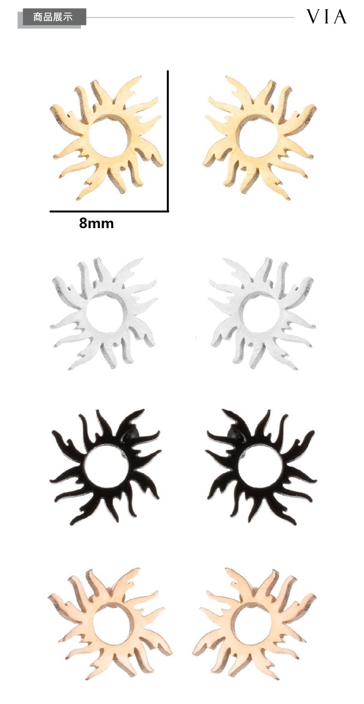 【VIA】星空系列 炙熱太陽造型白鋼耳釘 造型耳釘 鋼色