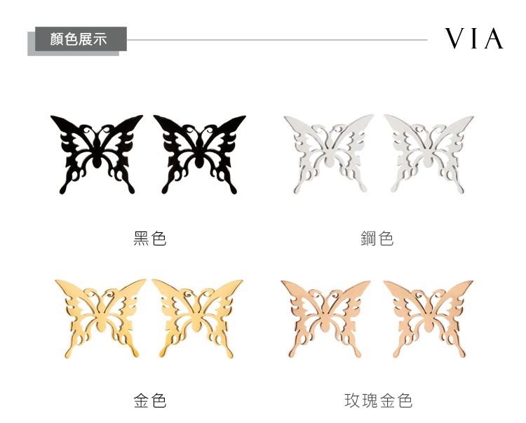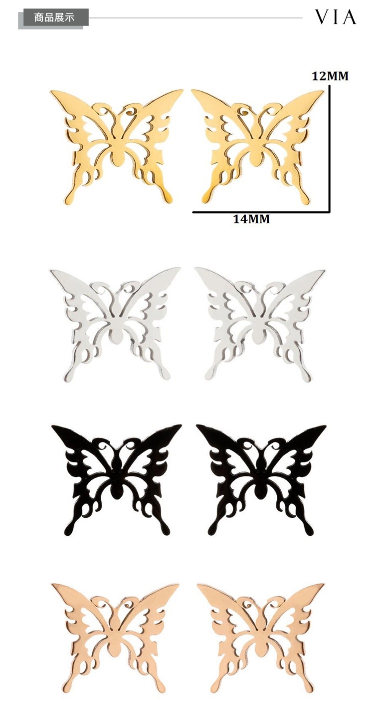 【VIA】昆蟲系列 縷空花蝴蝶造型白鋼耳釘 造型耳釘 鋼色